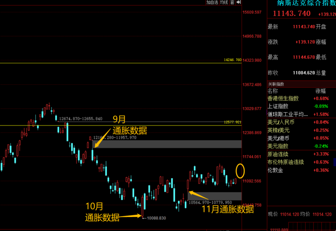 比如,11月10日因为通胀数据低于市场预期,纳斯达克瞬间飙涨5%,最后收涨7%。