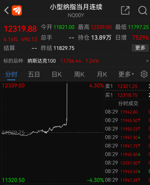 不出意外的是,纳斯达克盘前期货指数,瞬间就飙涨4%,感觉有点像是拿了上个月的剧本。