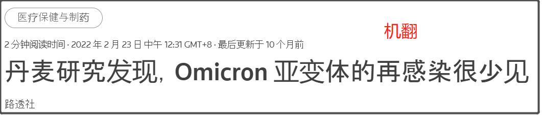 一个是今年2月23日,丹麦有个研究认为,奥密克戎变异毒株之间再感染很少见。