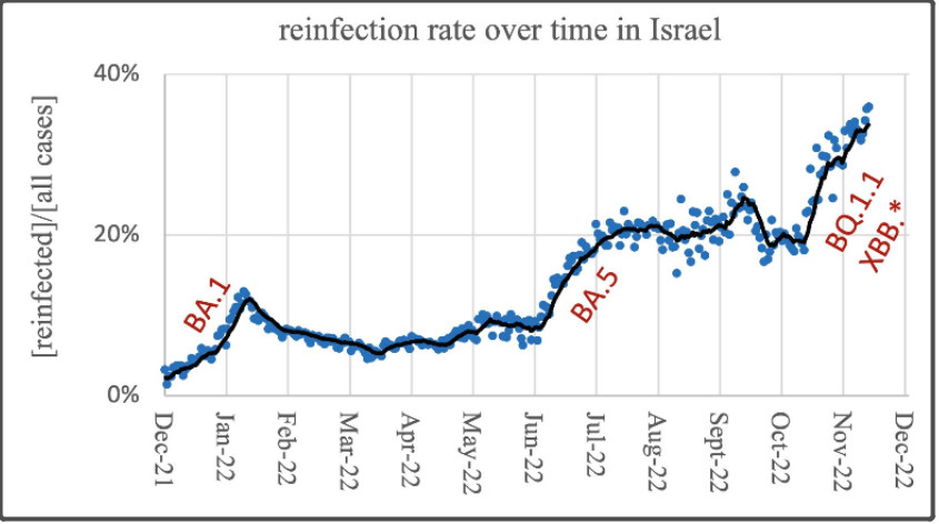 并且,BQ1.1和XBB毒株,在最近两个月,能引发再感染率激增,在奥密克戎已经流行一年,感染人数是德尔塔和原始毒株至少十倍的情况下,BQ1.1和XBB,显然是要能在BA.1和BA.5等早期变异毒株的基础上,实现有效再感染,才能实现再感染率激增。