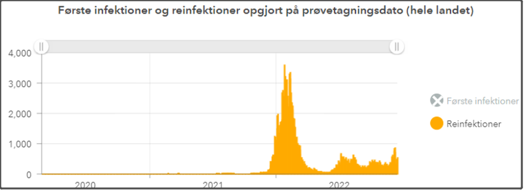 可以看到,2022年1月,丹麦疫情高峰期的时候,有过比较大的再感染人数。