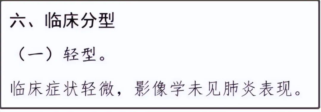 在第九版诊疗方案里提到,临床分型的“轻型”,辨别标准是“临床症状轻微,影像学未见肺炎表现”。