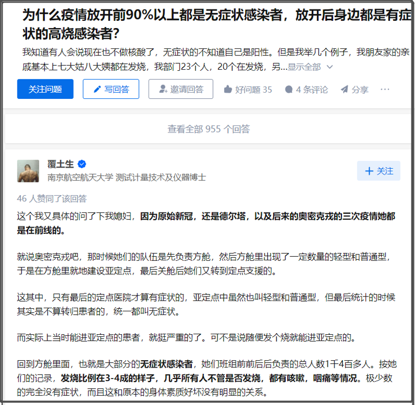 我也不认为自己有在“传谣”,因为无症状比例的问题,一直是有争议的。