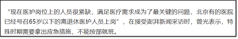 北京有的医院是已经在号召65岁以下的离退休医护人员上岗。