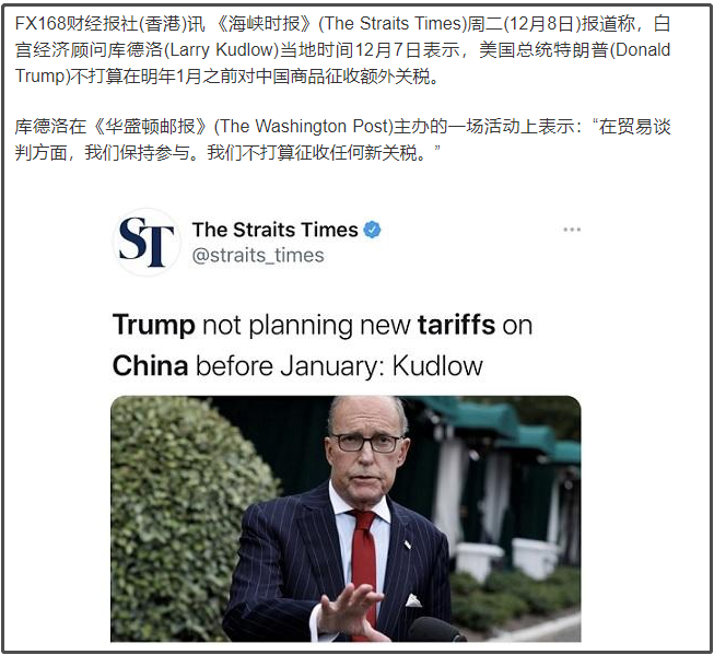 而就在前天,白宫经济顾问库德洛曾经表示,特朗普不打算在明年1月之前对我们新加额外的关shui。