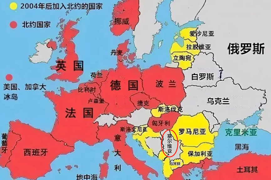 而且北约在2004年大幅东扩后,塞尔维亚周围一圈的国家,基本也都加入了北约。
