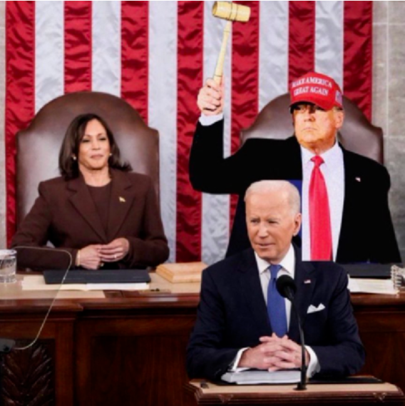 昨天,特朗普在社交平台上,发了一张P图,把他自己P到了众议长的位置上。