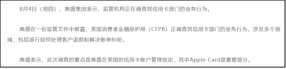 高盛的信用卡规模约为120亿美元,就规模体量来说,应该还不至于因此就一下子出现类似08年雷曼危机那样的事情。