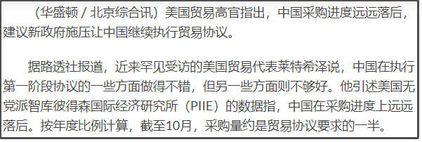 之前一直都赞美我们1月份合同执行很好的美国贸易代表,今天在接受采访时,突然改变了口风。