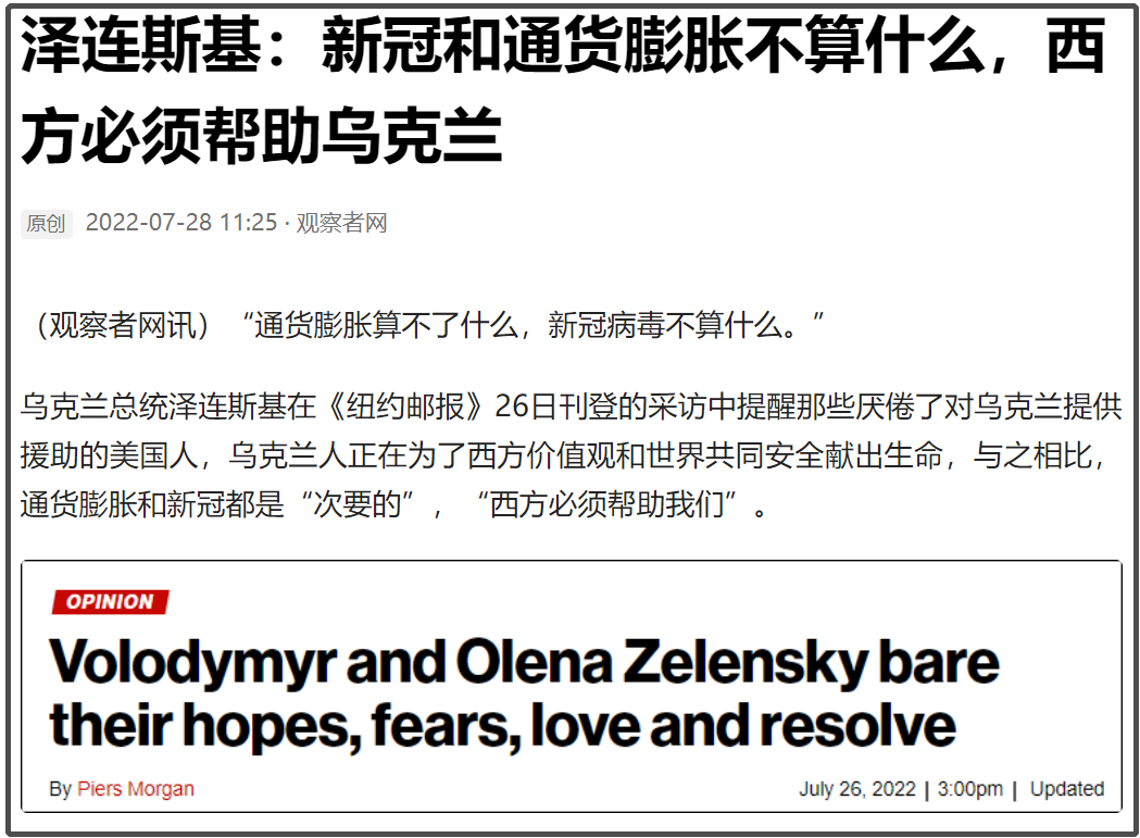 早在去年7月26日,泽连斯基接受《纽约邮报》采访时表示,乌克兰人正在为了西方价值观和世界共同安全献出生命。