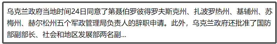 此外,基辅、扎波罗热、苏梅、赫尔松等五州也出现“离职潮”,这5州的军政管理局负责人均辞职。