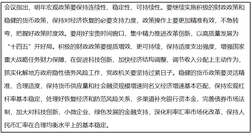 1、明年宏观政策要保持连续性、稳定性、可持续性。