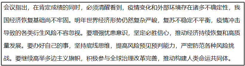 会议在肯定了今年的经济工作之后,同时也对当前存在的风险作出了警示。