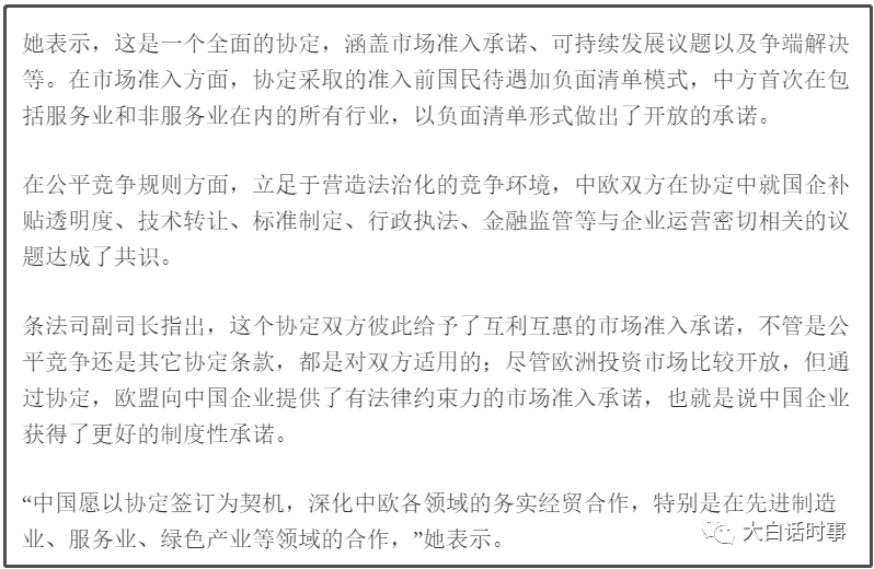 当然,可能会有一些人比较纠结于,我们在中欧投资协定里可能有做出一些看上去的让步。