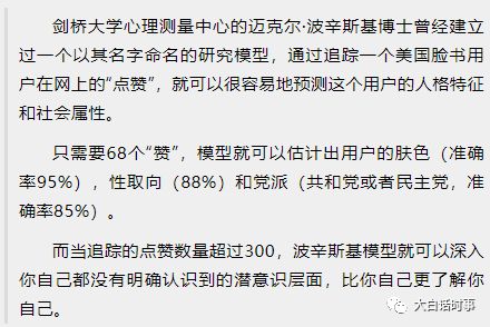 剑桥分析公司大概就是通过这样一个摸清用户“屁股坐在哪里”,并拥有朝其推送信息来潜移默化影响用户的技术。