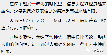 而各类平台的信息推送,可以通过大数据加工,推送给我们所喜欢看到的、所想要看到的。