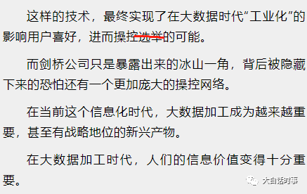 比如他们可以从中发现哪部分人是特不靠谱的坚定支持者,那么他们就可以给这些支持者整天推送有利于特不靠谱的新闻,让这些特不靠谱的坚定支持者,能看到的新闻都是利于特不靠谱的,久而久之,他们会近似于被洗脑,更加坚定的成为特不靠谱的支持者。