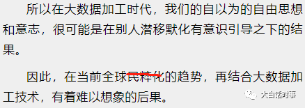 我们的喜好、我们的理念、我们的倾向、我们的性格、都会再这些大数据加工企业面前显露无疑。