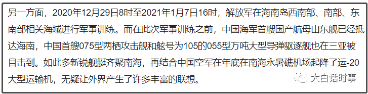 所以美国最近两个月也是到处挑衅,比如说在12月31日,美国两艘驱逐舰组成双舰编队通过了海峡。还比如说,最近还传出英国要派航母来南海,跟美国和日本联合举行军事演习。