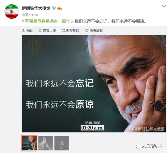 昨天伊朗驻华大使馆还专门为此发了条微博