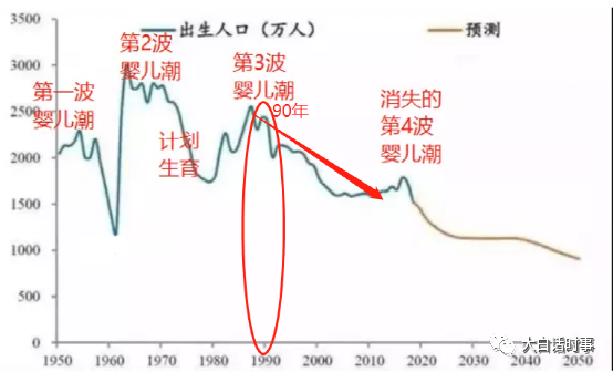 从上面分析我们就知道原因,因为90年开始的出生人口还是出现骤降。
