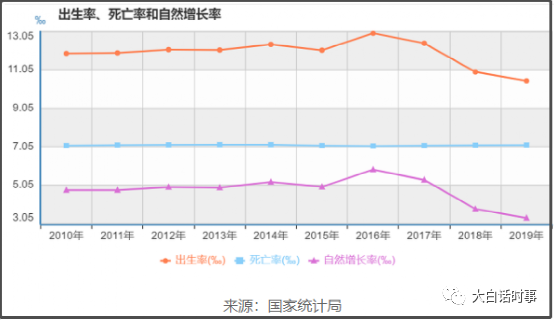 从上图可以看到,本来2010年~2015年,我们的出生率还保持在一个比较平稳的状况。