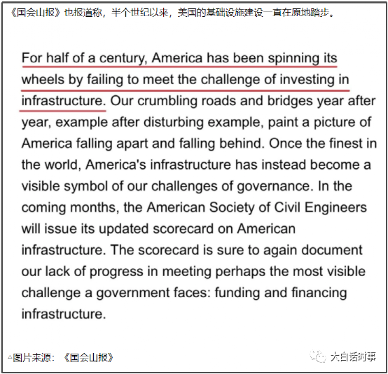 美国《国会山报》最近也在吐槽,美国的基础设施建设一直在原地踏步。