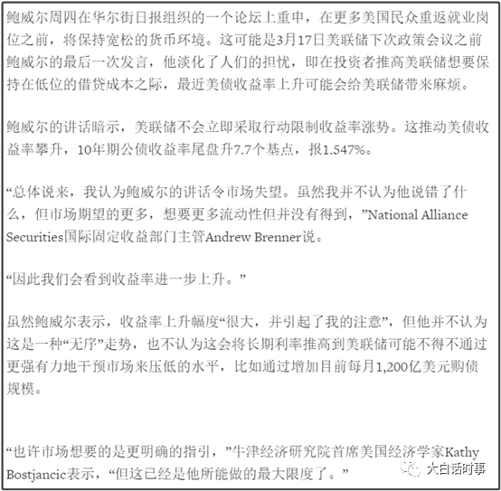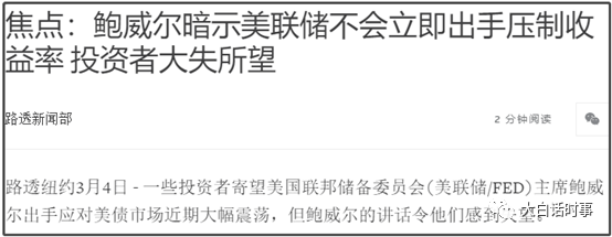 这主要是因为,鲍威尔并没有在讲话里透露会出手干预当前美国国债收益率大幅度上涨的意思。