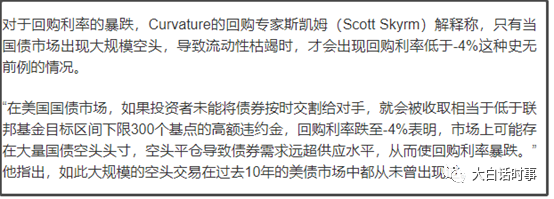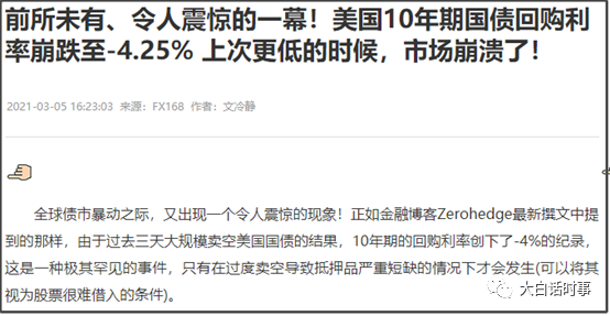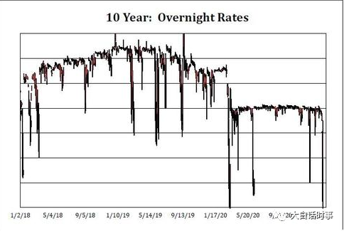 比如说昨天晚上,美国10年期国债回购利率崩跌至负的4.25%。