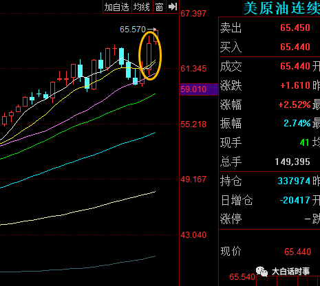 而国际油价也从去年4月份跌到负油价的极端情况,一路又开始极端上涨到现在65美元。