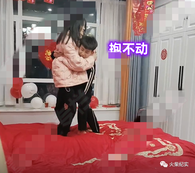 事情发生在河南安阳的一婚礼现场,当时已经是晚上,宾客们已经纷纷离去,关系较为亲密的亲戚,来看一看新郎和新娘。按照当地风俗,新郎新娘要秀一下“恩爱”,完成传统的婚礼仪式。首先,要新郎公主抱新娘,在床上转一圈,表示婚姻圆圆满满。有趣的是,新郎因为个子太小,竟然一下子没抱起新娘,惹得众人哄堂大笑。转一圈之后,新郎又得背着新娘转一圈,至于有什么寓意,只有本地人才知道了。