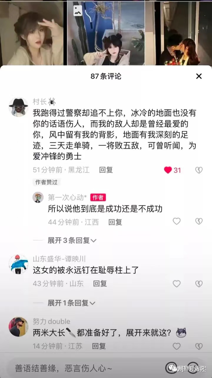 勇士的结局是输了爱情,失去所有,而女子却赚足了眼球和流量,“逍遥法外”。