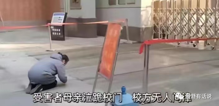 维权无果,母亲立牌长跪在学校门口,希望能得到一个说法。