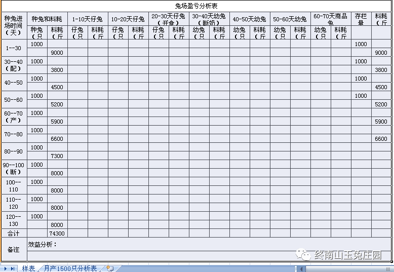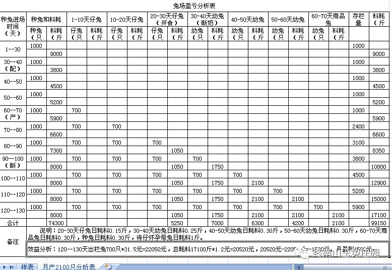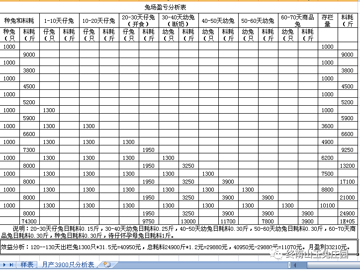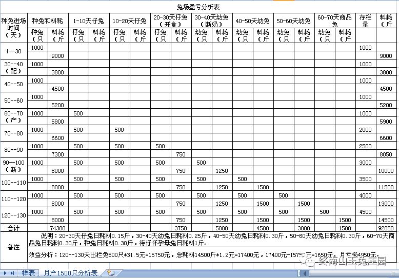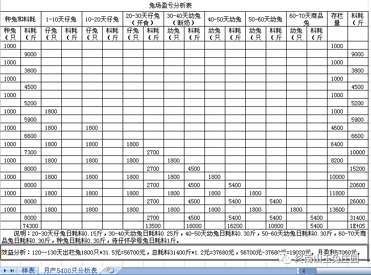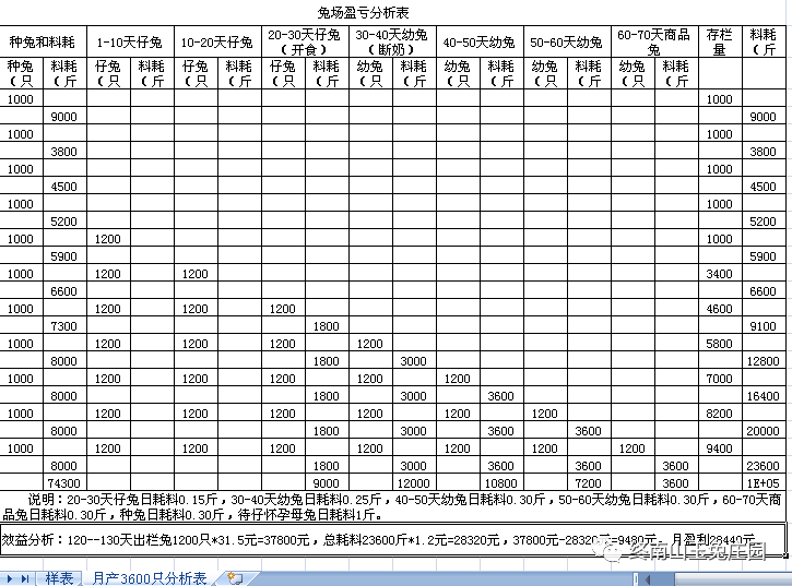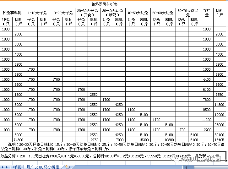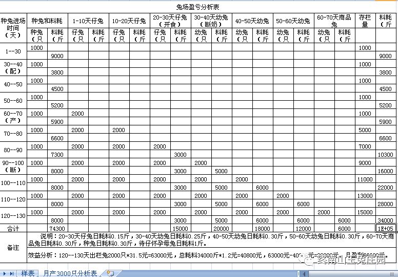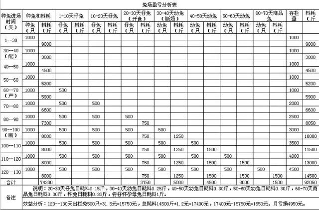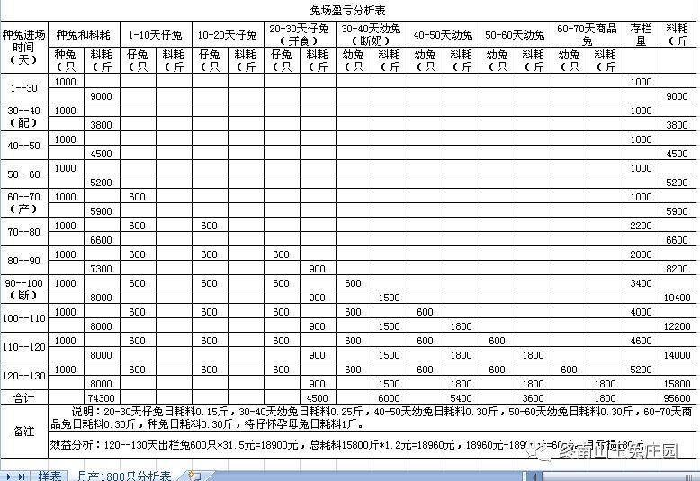 兔场1000种兔各段繁殖出栏商品兔效益分析表