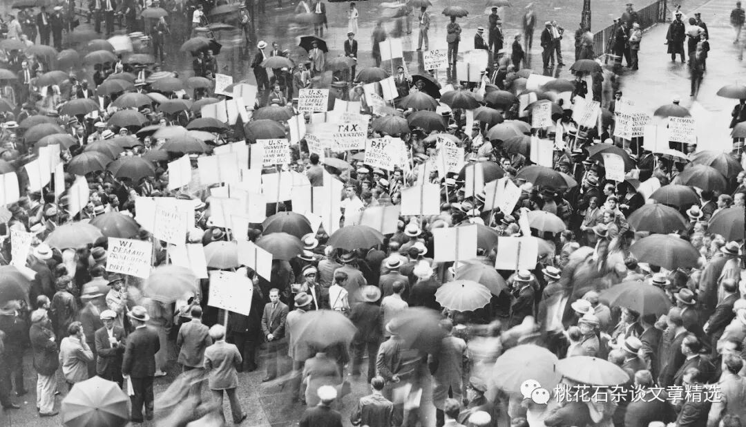1931年在纽约一家银行门前挤兑不成抗示威的人群
