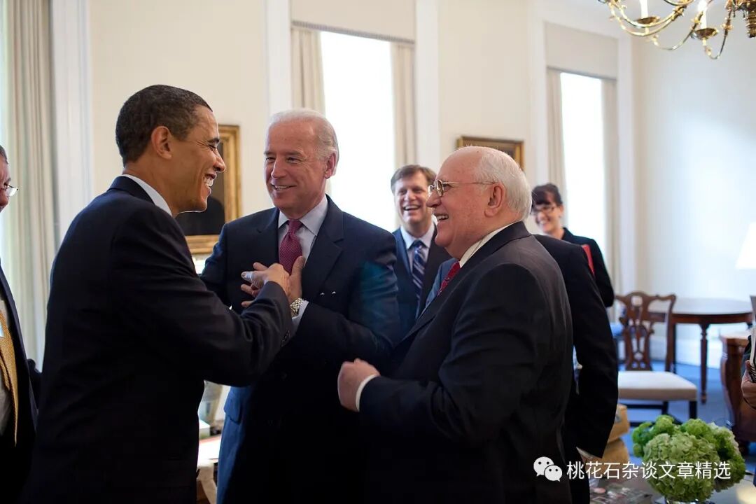 (戈尔巴乔夫与美国政要相见欢的场景)