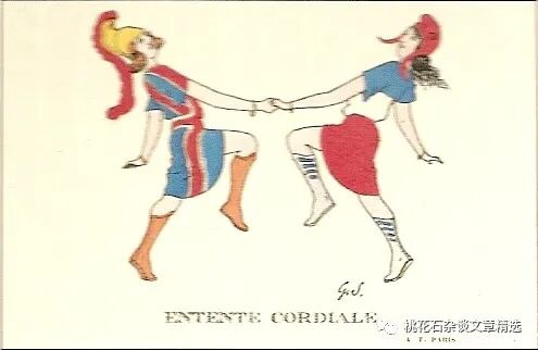 (1904年《英法协约》的宣传画,图中文字的意思是“温暖协约”)