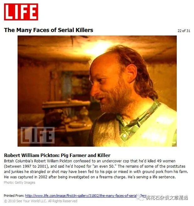 罗伯特·皮克顿是加拿大不列颠哥伦比亚省一个身家数百万的猪场老板,而他后来被指控杀死了大约6到50名妓女,并将其遗体喂给了自己猪场里的猪。