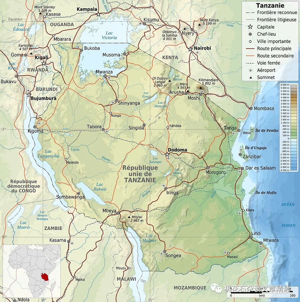 (坦桑尼亚,位于非洲大陆的是原来的坦噶尼喀,右边的小岛则是原来的桑给巴尔)