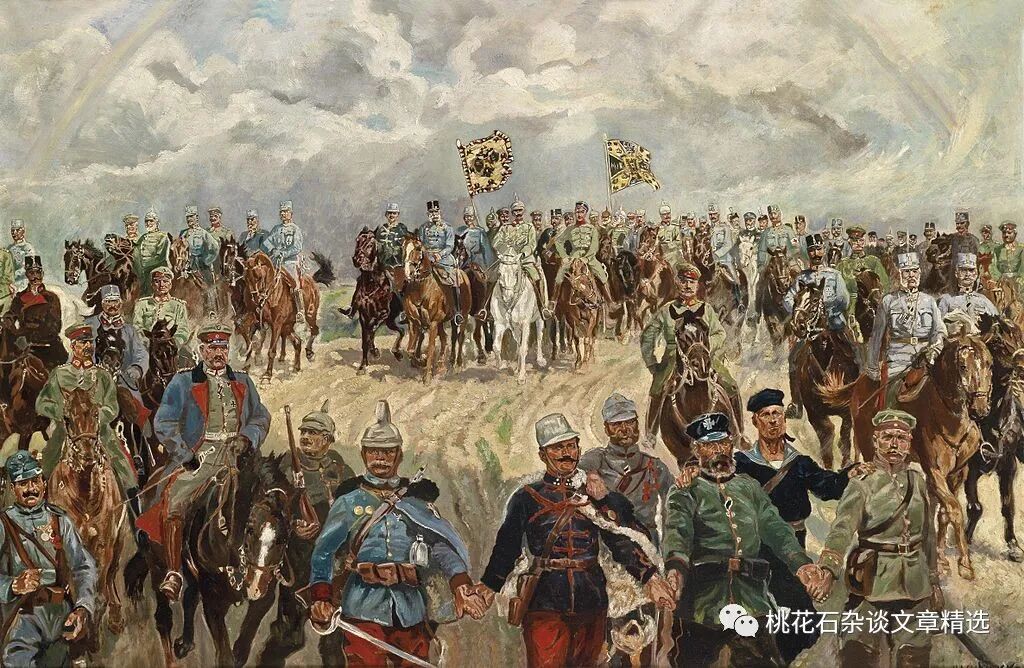 描绘奥匈帝国皇帝弗朗茨·约瑟夫一世与德皇威廉二世统帅两国将领的画作
