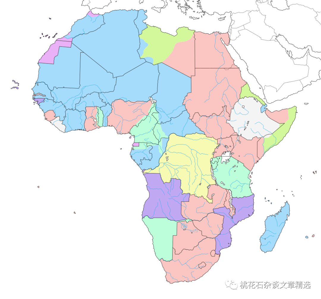 (柏林会议确定的非洲瓜分计划,青色为德国殖民地,绿色为意大利殖民地)