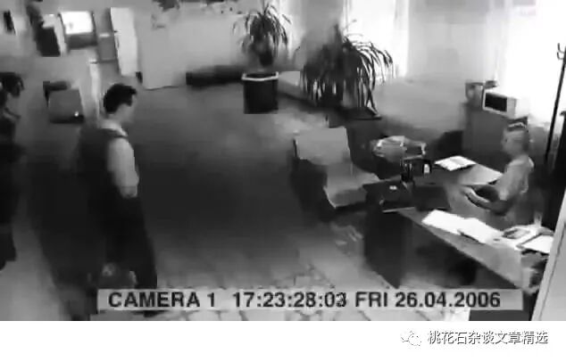 而且监控视频的问题还不仅如此。在谢尔盖第二次接受问诊时,诊室视频显示的日期是2006年4月25日,纪录片里也反复说那天是4月25日,而且当时墙上的时钟显示的时间是10点39左右。但之后纪录片还播放了一个谢尔盖走出诊室,进入接待室的片段,而这个接待室的视频所显示的时间却已经是2006年4月26日下午5点23分了,也就是如果这两个视频都是真的,那么谢尔盖在帕布洛医生的诊室里竟然至少待了1天零6小时又44分钟,这也明显是不可能的。而且4月26日那天是星期三,但监控视频上却显示的是星期五,而这个日期跟1958年4月26号也对不上了,因为那天是星期六。
