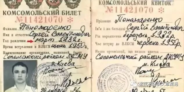 首先是纪录片里反复强调,谢尔盖是出生在1932年6月17日,而且为了使其显得可信,还播放了一张谢尔盖的共青团员证。但这张共青团员证上所写的谢尔盖出生年月却是1932年3月(Марта),而不是6月(июнь)。所以这是第一个无法自圆其说的时间问题。