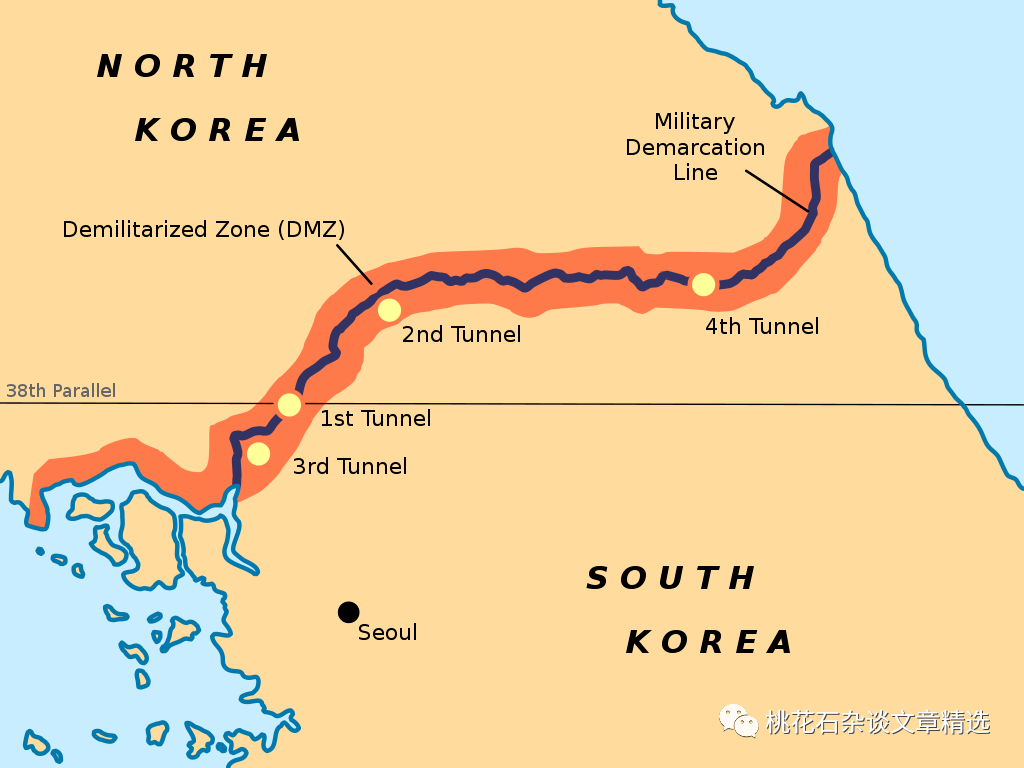 而朝鲜半岛在二战期间其实并没有发生大的战事。但1945年8月15日日本宣告投降当天,美国总统杜鲁门致电苏联领导人斯大林,建议美苏双方以北纬38度线为界,分别在日占区接受日本投降,斯大林表示同意。自此38线就成了朝鲜半岛美占区和苏占区的分界线。1948年8月,美占区成立了大韩民国,当年9月苏占区成立了朝鲜民主主义人民共和国。1950年6月朝鲜半岛内战爆发,后来演变成多国参与的朝鲜战争,最终经过三年激战,双方的战线还是稳定在了三八线附近,最后签署停战协议时就以此线为界,确定了南北双方的边界,也就是朝鲜和韩国的边界。