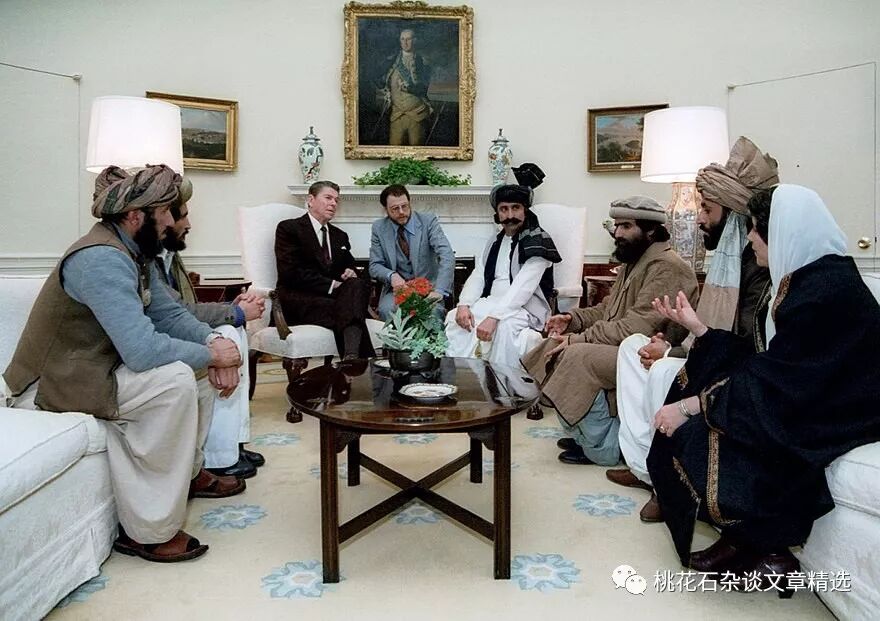 (时任美国总统的里根会见阿富汗圣战者的场景)