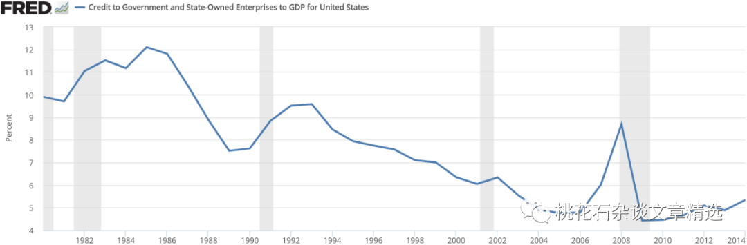 enterprises)。在二十世纪八十年代,美国的政府资助企业占国民经济比例曾经超过10%,后来逐渐降低,但基本也始终维持在5%以上。2008年金融危机之后,美国的政府资助企业在经济占比中又出现了一定程度的上升,目前大概在6%左右。