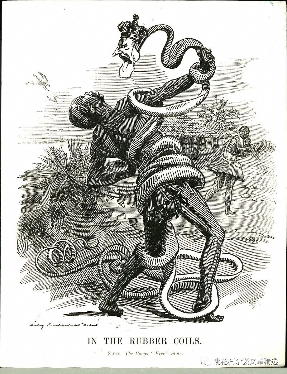 之后利奥波德二世立即在刚果建立了刚果自由邦,通过刚果国际协会这个“非政府组织”对刚果展开了统治。而因为这是他的私人领地,所以在其统治建立之后,当地通过税收等方式产生的所有收入都落入利奥波德二世的私人囊中,刚果也成为了利奥波德二世的一个不竭的摇钱树。而因为利奥波德二世是通过在欧洲列强那里假装做慈善得到了刚果的统治权,但在刚果却横征暴敛,大行暴政,所以当时也有很多人通过不同方式讽刺其作为,比如下面这个漫画: