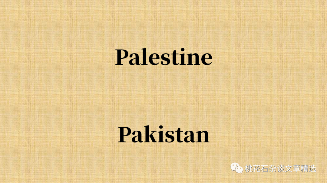 (英语里两国国名的不同,上面是巴勒斯坦,下面是巴基斯坦)