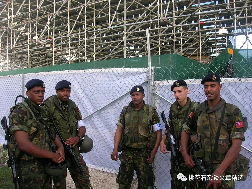 一群百慕大士兵,大致反映其种族构成