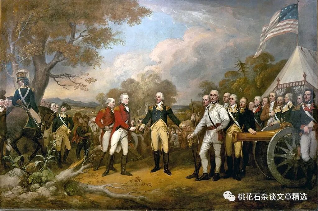 法美军队在约克敦接受英军投降场景